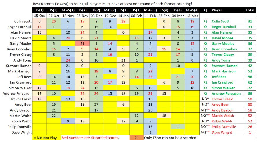 SENIORS WINTER LEAGUE DIV 1 FINAL TABLE