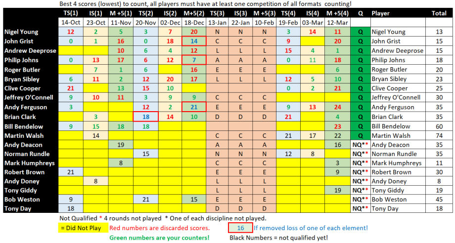 SENIORS WINTER LEAGUE DIV 2 FINAL TABLE